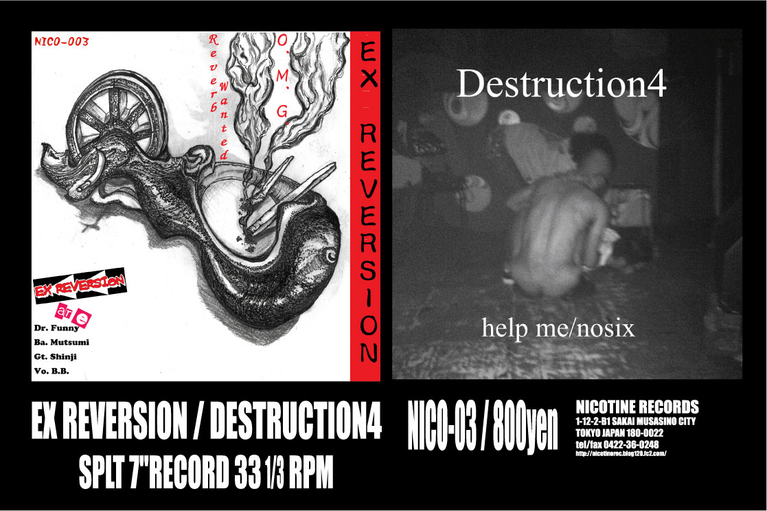 お世話になっております。ここの管理人を務めております、ファニーです。 現在、EX REVERSION では新しいホームページを準備中です。 URLも変わりまして。 新ホームページは http://exreversion.wix.com/ex-reversion-hp こちら。 なお、これからの新ホームページの管理は、ボーカルBBとお手伝いして頂いてる方が引き受けてくださいます。 現在はまだお試し期間中ですが、順次新ホームページに移行する予定です。 ブックマーク。お気に入りにここを入れてくださっている方は、お手数ですが変更をよろしくお願いします。 ここをご覧いただいていた皆様、つたないホームページでしたが(レンタルブログを改造した見せかけHP(笑))今までありがとうございました。 これからも EX REVERSION を何卒よろしくお願いします。 ファニー(これからはブログに専念) スプリット7インチレコード発売中! DESTRUCTION4 vs EX REVERSION 通販可能です。ご注文、お問合せは→ここから PR |